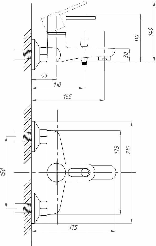 Смеситель Профсан PSM-815-008 для ванны с душем УТ-00134973