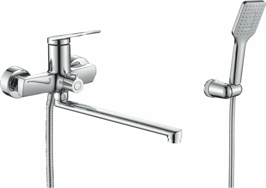 В комплекте однорежимная душевая лейка и душевой шланг длиной 1,5м., универсальная присоеденительная группа для установки на горизонтальную поверхность, фум-лента, индивидуальный пакет, паспорт, гарантийный талон.