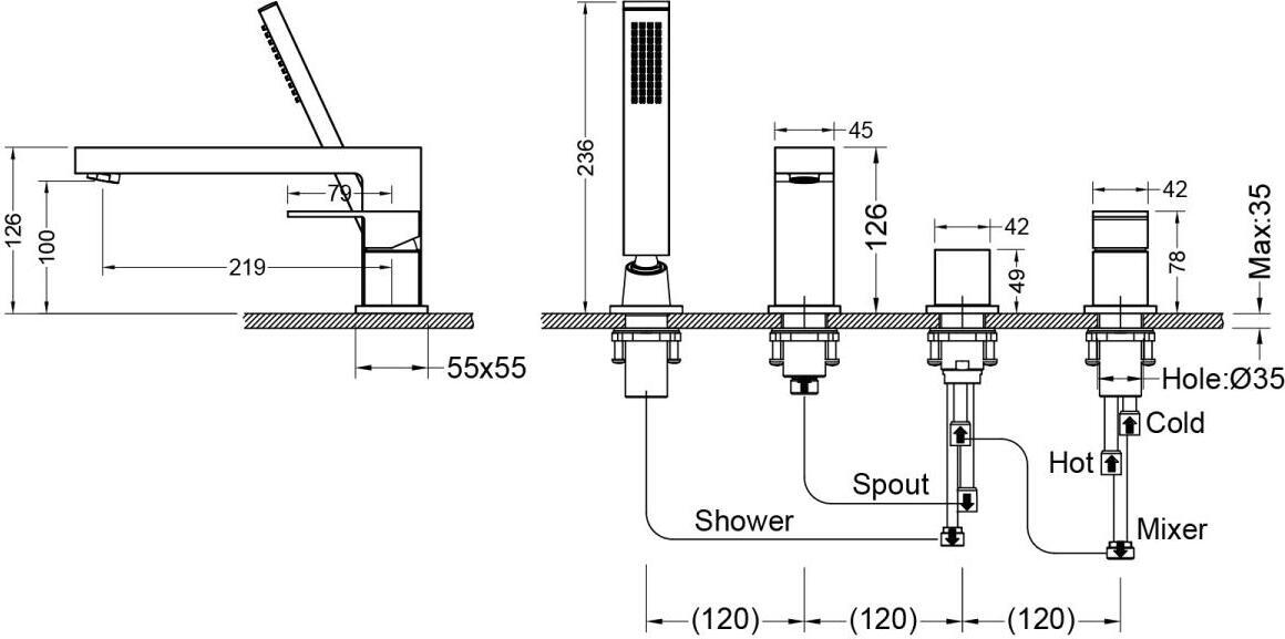 - аэратор, душевая лейка, держатель душевой лейки, душевой шланг