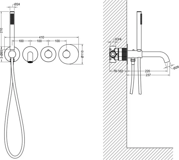 - Излив для наполнения ванн: