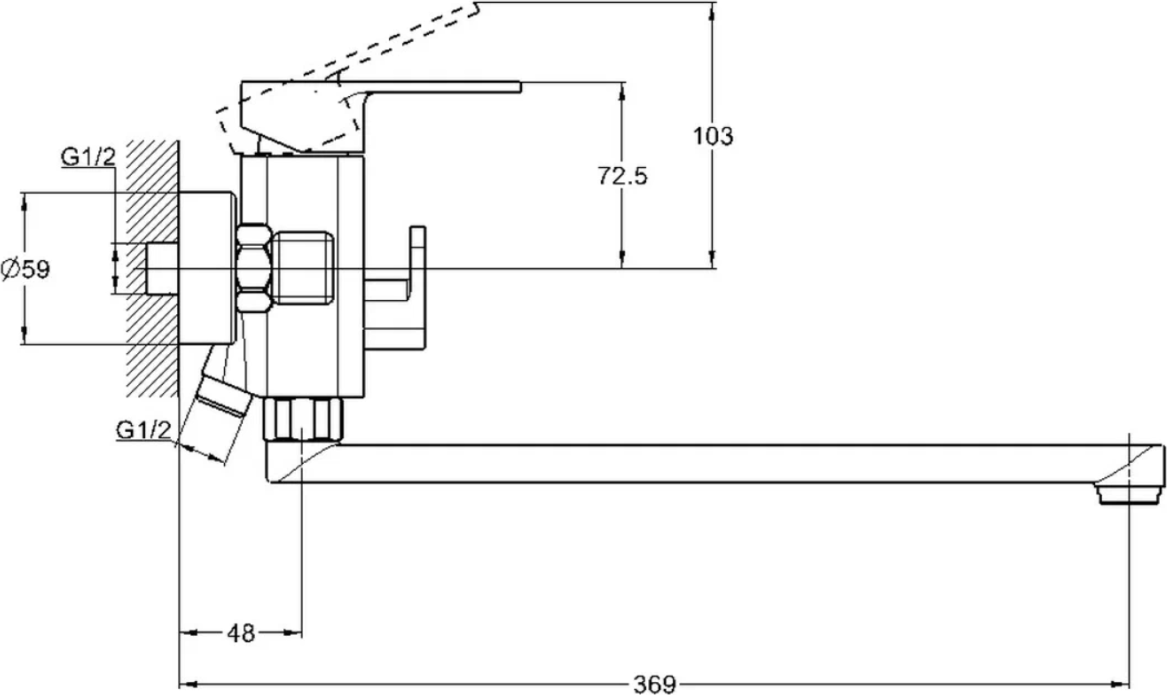 - Длина излива, см: 36.9