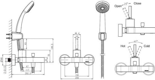 - аэратор, душевая лейка, держатель душевой лейки, душевой шланг