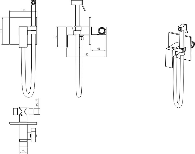 Смеситель с гигиеническим душем Boheme Qubic 477-GM оружейная сталь матовая УТ-00160274