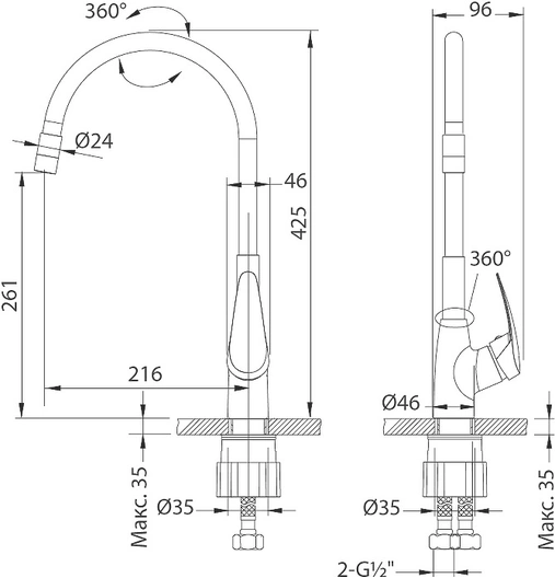 - Высота излива, см: 26.1