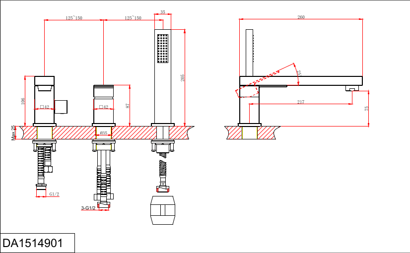 Смеситель D&K Bayern.Liszt DA1514901 на борт ванны хром