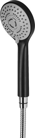 В комплекте душевой набор: душевая лейка d90 мм (3 режима), шланг в металлической оплетке 1500 мм (с защитой от перекручивания).