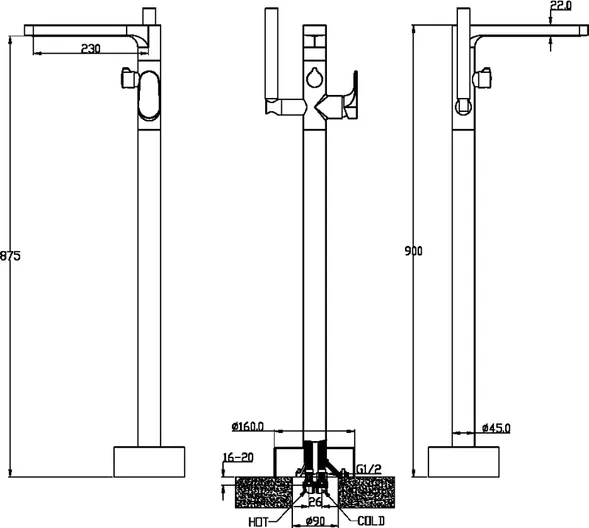 Смеситель Boheme Spectre 459-B напольный, для ванны, чёрный