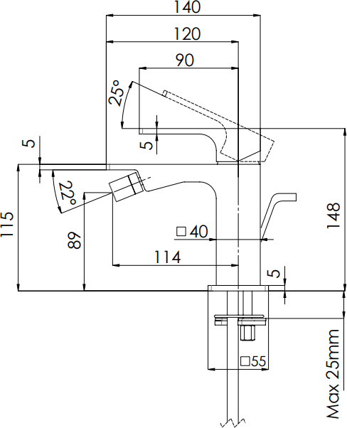 В дизайне смесителей серии ABSOLUTE преобладают кубические формы.