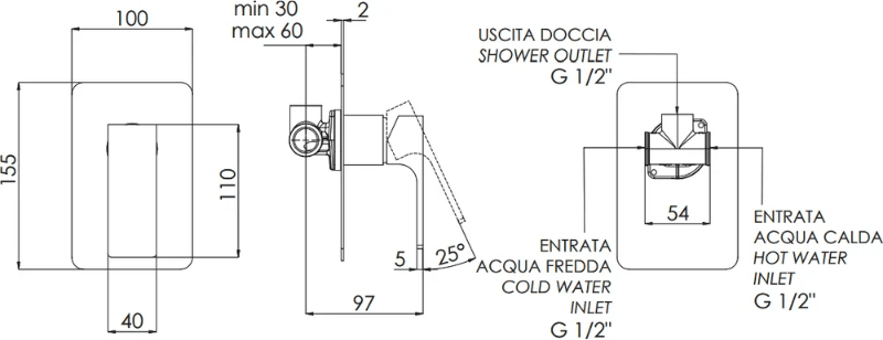 - скрытая монтажная часть, смеситель