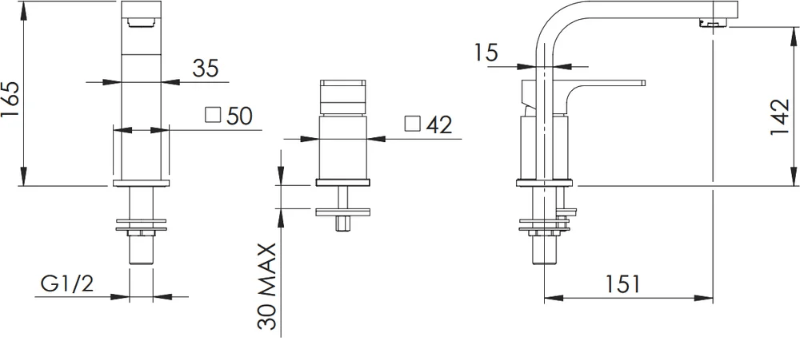 В дизайне смесителей серии ABSOLUTE преобладают кубические формы.