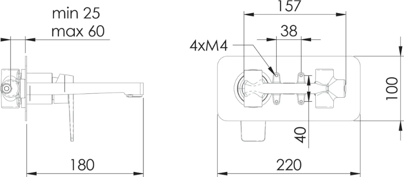 - скрытая монтажная часть, смеситель