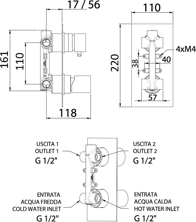Смеситель Remer Edge EG592NO для душа, черный матовый УТ-00170847