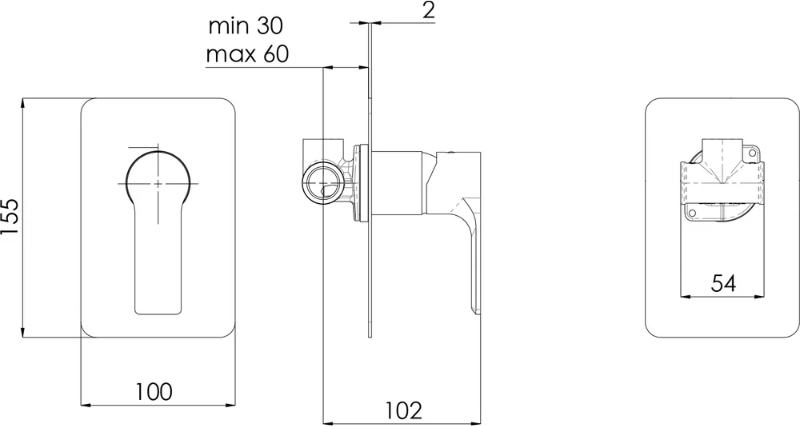 - скрытая монтажная часть, смеситель