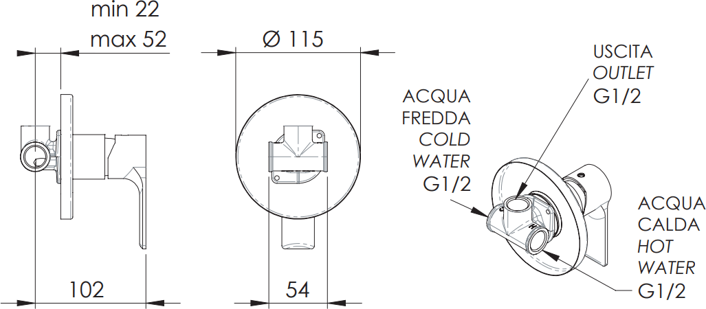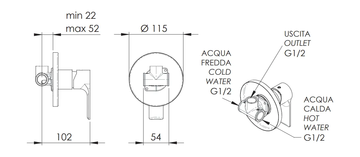 - скрытая монтажная часть, смеситель