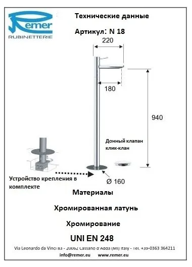 Смеситель Remer Minimal N18 напольный для раковины