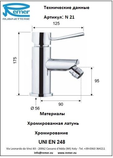 Смеситель Remer Minimal N21 для биде УТ-00151928