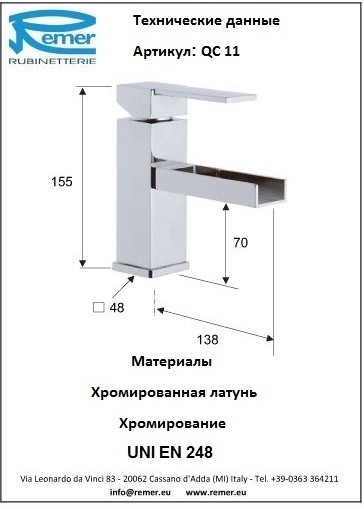 Смеситель Remer Qubika Cascata QC11 для раковины
