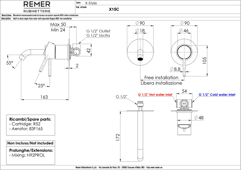 Смеситель Remer RR X15C для раковины-чаши