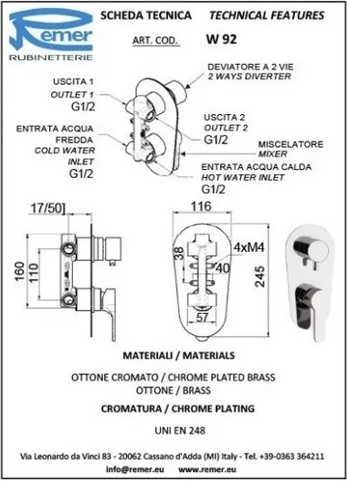 Смеситель Remer Winner W92 для душа УТ-00152038