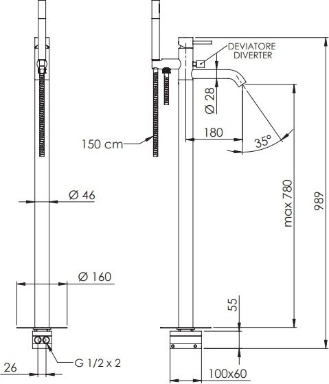Смеситель Remer X Style X08NP для ванны, никель брашированный