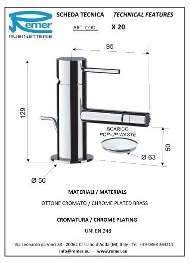 Смеситель Remer X Style X20 для биде УТ-00152120