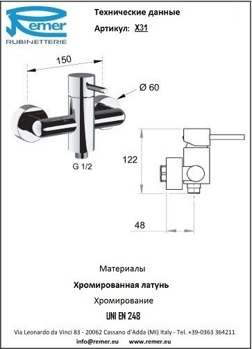 Смеситель Remer X Style X31 для душа