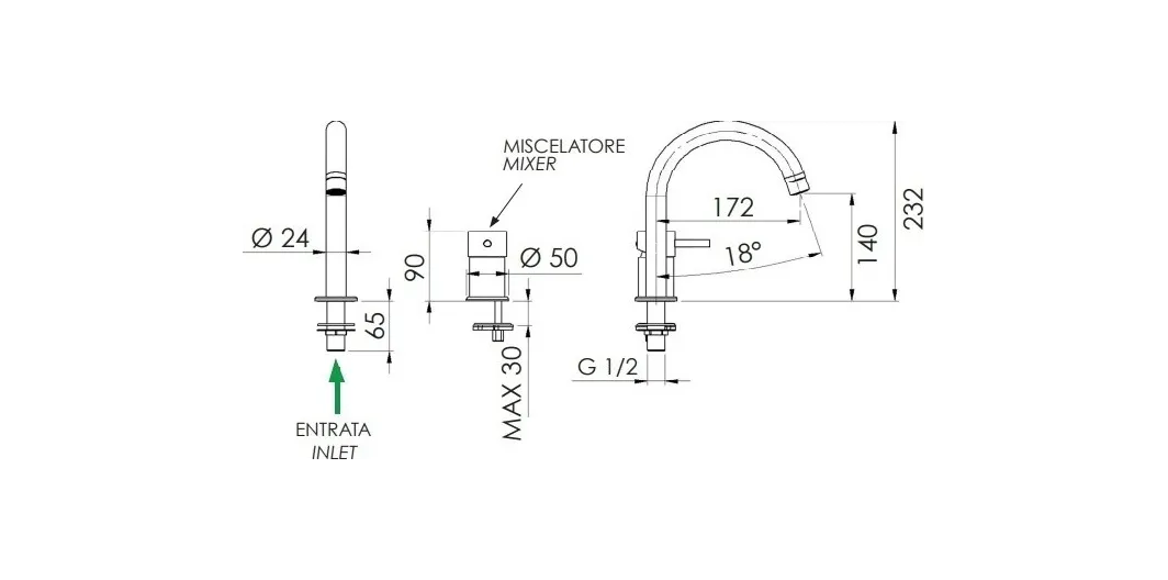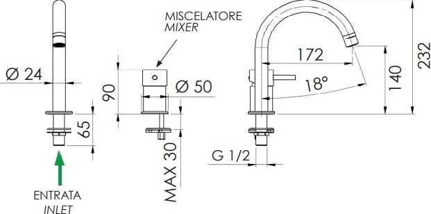 - Длина излива, см:17.2