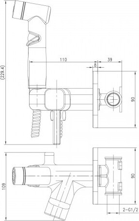 - Аксессуары в комплекте: лейка для биде с нажимным механизмом, шланг 1,2 м