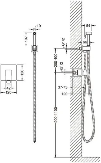 - гигиенический душ, держатель душевой лейки, душевой шланг, смеситель