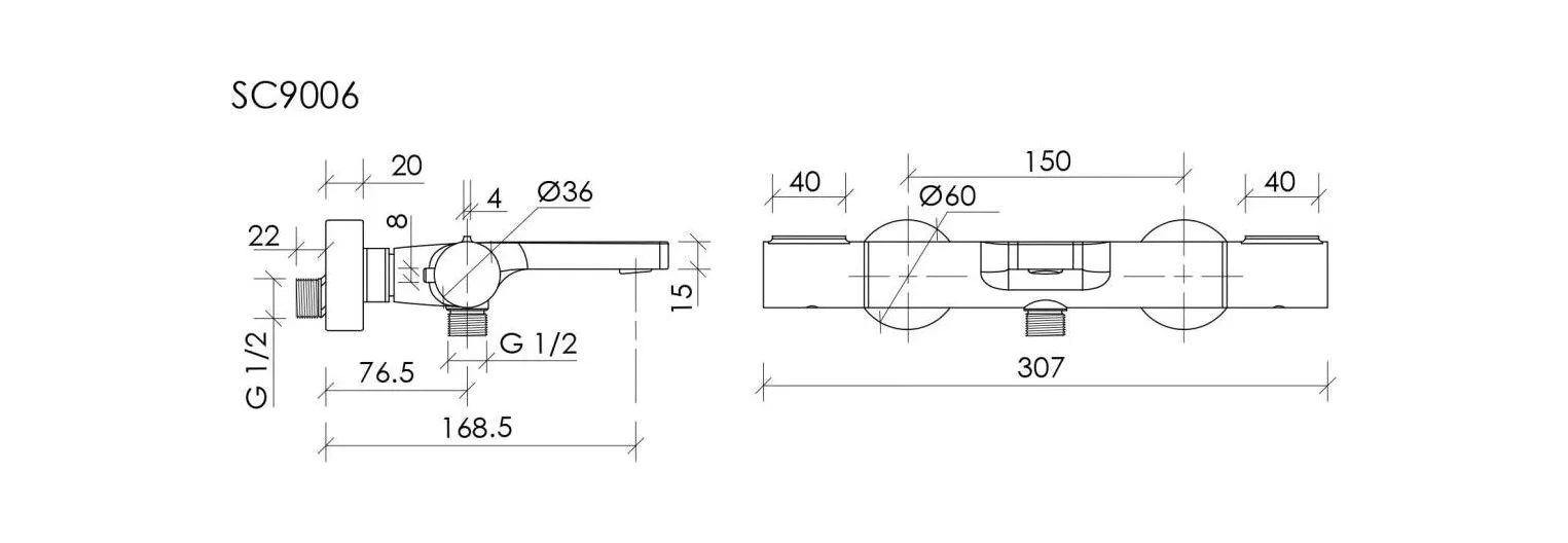 - Смеситель для ванны и душа с термостатом