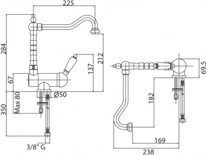 Смеситель CEZARES VINTAGE-LLPM2-02-ED кухонный однорычажный с регулируемым углом наклона излива бронза, ручки Мрамор