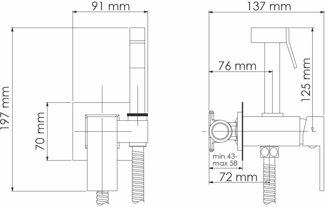 - гигиенический душ, держатель душевой лейки, душевой шланг, смеситель
