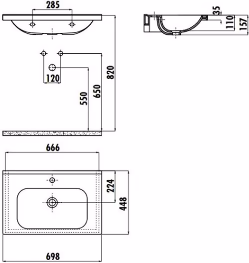 - Расположение отверстия под смеситель: