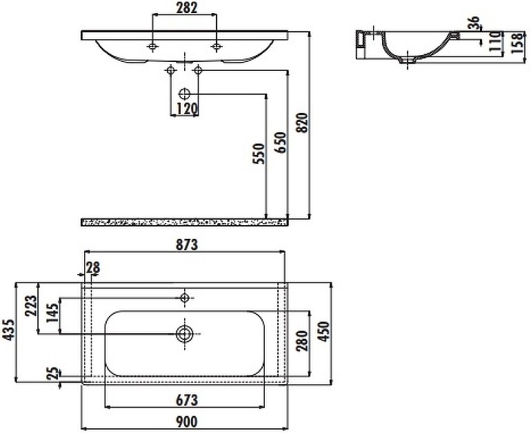 - Расположение отверстия под смеситель: