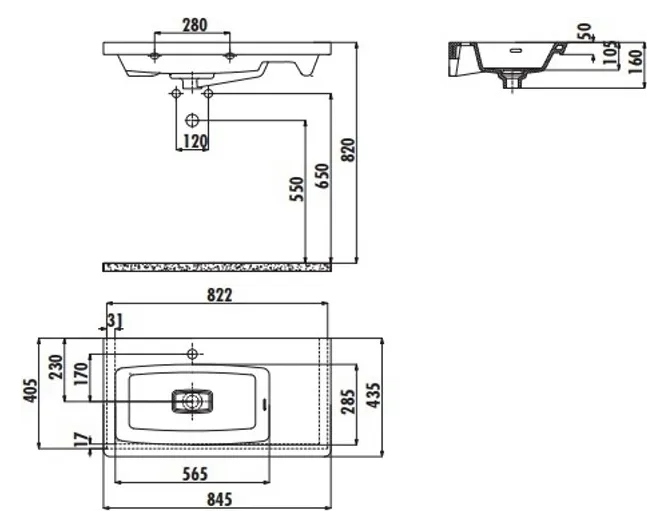 - Расположение отверстия под смеситель: