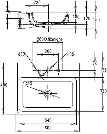 Умывальник Jacob Delafon Fit E1188-X6-00, устанавливается на мебель, 60x48, белый