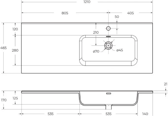 Раковина BelBagno BB1200ETL-R 1210x460x175 УТ-00176196