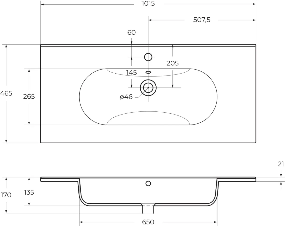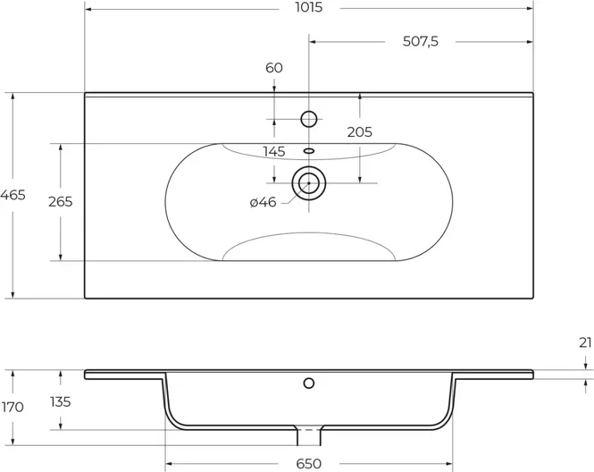Раковина BelBagno Love LOV-1000-LVB 101x46x17