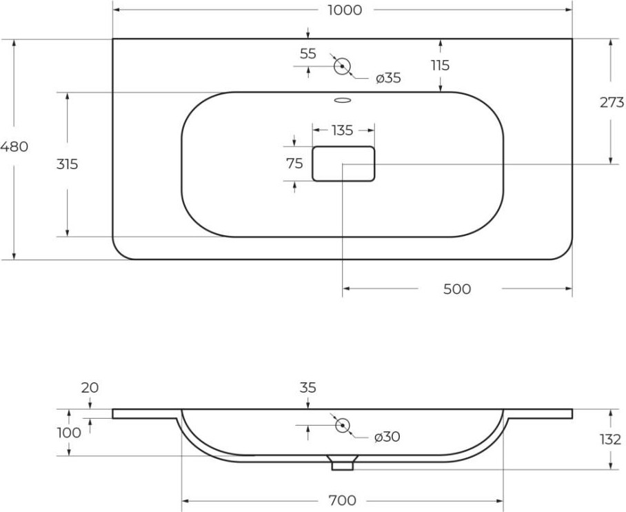 Раковина мебельная Cezares CZR-1000/480-LV-MR-NV 1000x480x132