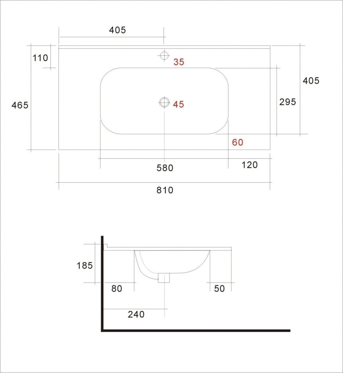 - Расположение отверстия под смеситель: