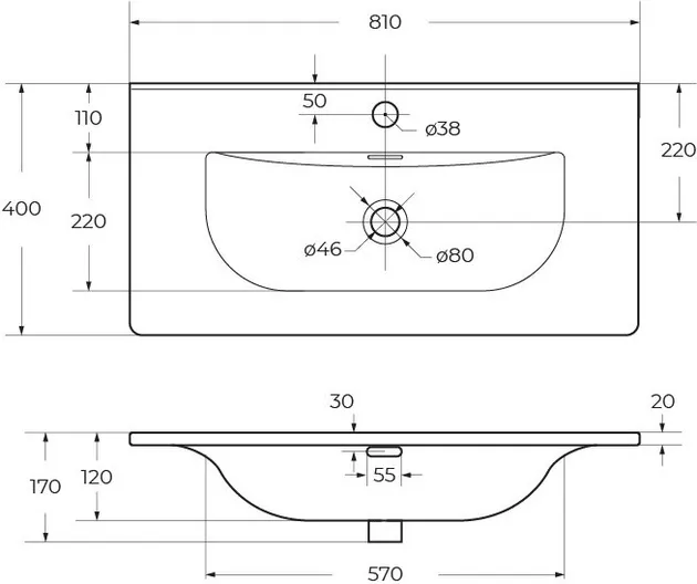 Раковина мебельная BelBagno BB-8099-3-80 810x400x170