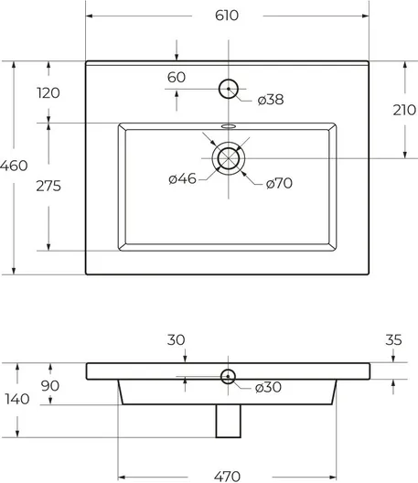 Раковина мебельная Cezares CZR-8070-60 610x460x140
