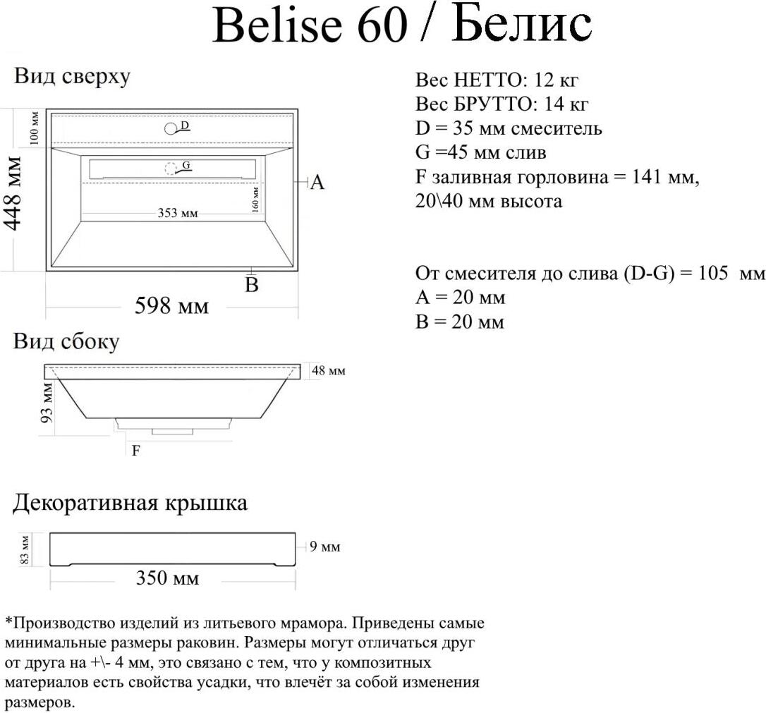 - Раковина мебельная - 1 шт. Инструкция - 1 шт.