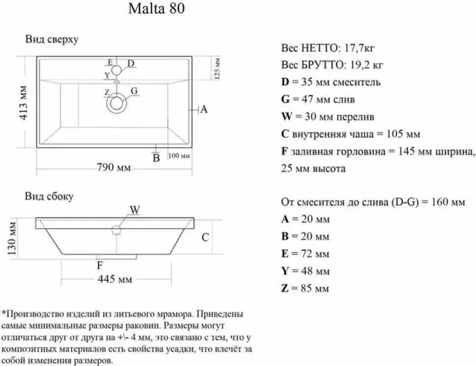 - Раковина - 1 шт. Инструкция - 1 шт.
