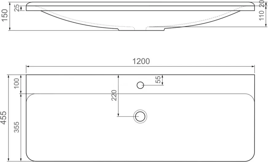 Раковина мебельная Мадера (Madera) Соло (Solo) 120 литьевой мрамор