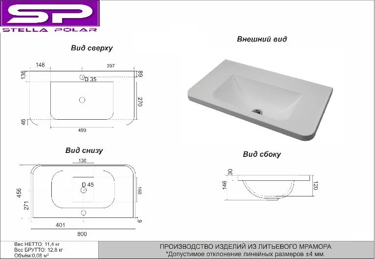 Раковина мебельная Stella Polar Роберта 80 SP-00001638 УТ-00202868