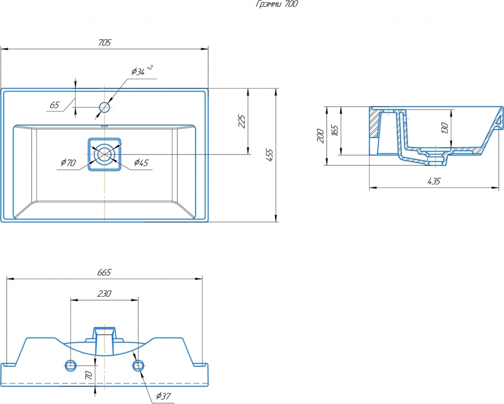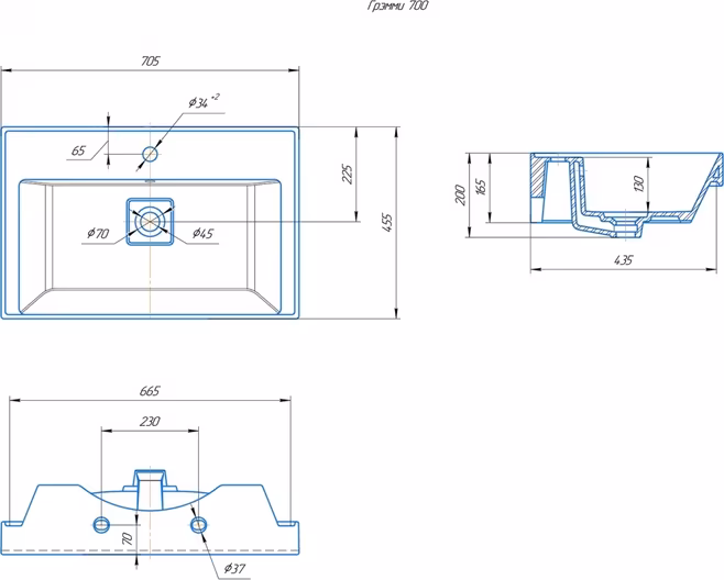 Раковина мебельная Valleri Грэмми 70 4610119205249 УТ-00192229