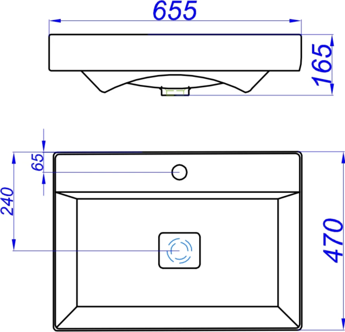 - Отверстие под перелив: