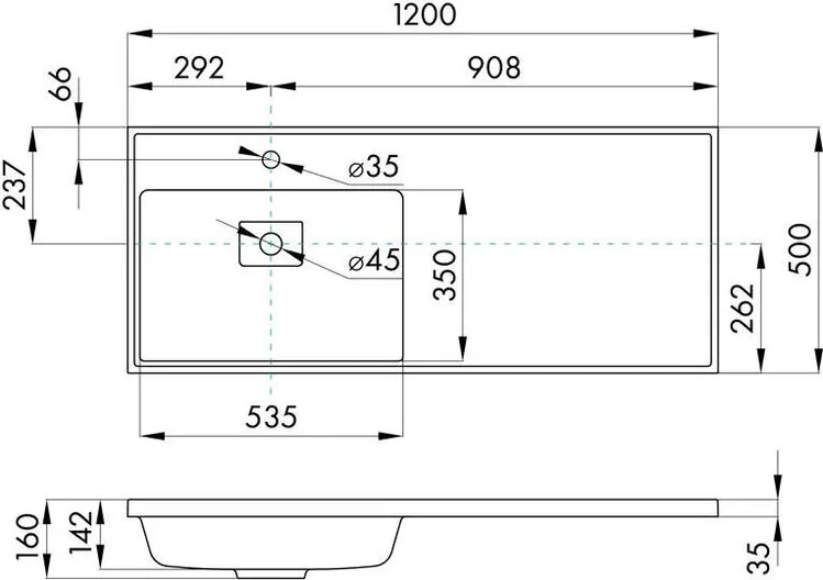 - Расположение отверстия под смеситель: