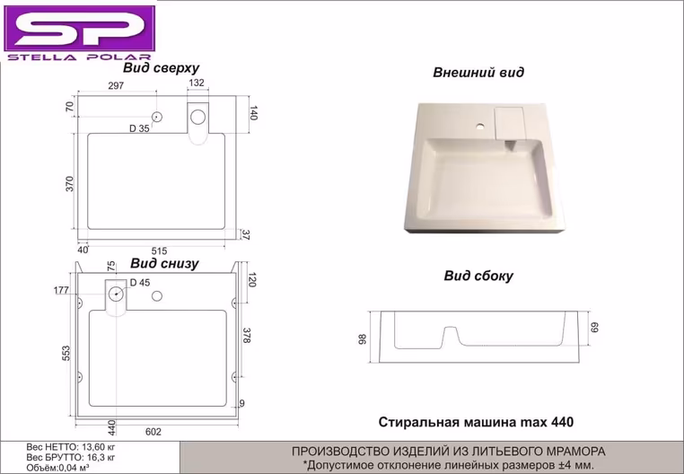 Технические свойства (раковины)
